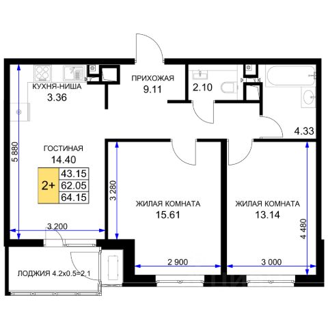 Продаётся 2-комнатная квартира в сданном доме (Литер 2.7), срок сдачи: IV-кв. 2024, общей площадью 51.6 кв.м., на 6 этаже. Расположение, транспортная доступность