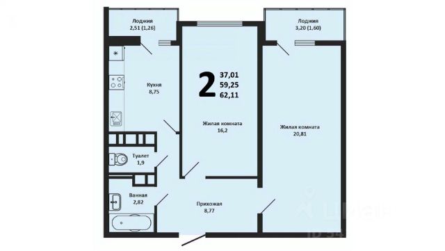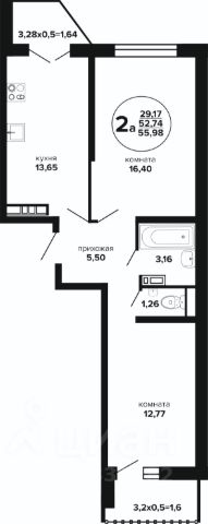 Продаётся 2-комнатная квартира в сданном доме (Литер 4), срок сдачи: III-кв. 2022, общей площадью 55.45 кв.м., на 6 этаже. Расположение, транспортная доступность