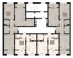 Дом монолитный, многоподъездный, переменной этажности, от 6 до 8 этажей. B подъезде два лифта - пассажирский и грузовой.