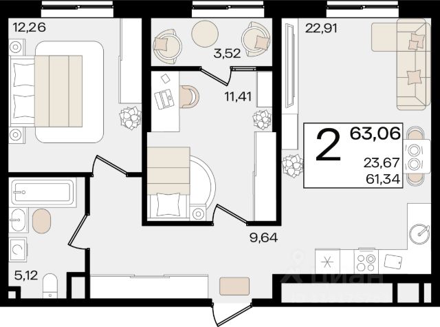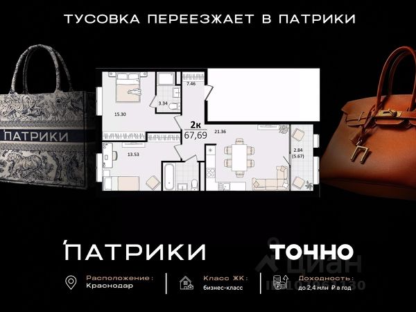 В продаже 2-комнатный апартамент 60.96 кв. м, расположенная в 4 корпусе жилого комплекса комфорт-класса "Режиссёр". Комплекс от девелопера AVA находится в развитом районе Краснодара, в 5 минутах пешком от крупного ТРЦ. Транспортная доступность • Остановка трамваев 8, 9, 10, 20 - в шаговой доступности; • 4 торговых центра в 5 минутах ходьбы; • 13 минут до живописного парка "Краснодар"; • 30 минут до аэропорта по Уральской улице; • Удобный выезд к морю через трассу М4. Современная архитектура Облик комплекса "Режиссёр" отражает современный стиль, отличающийся продуманной функциональностью. Устремленные ввысь 2 литера высотой от 14 до 21 этажа гармонируют с природным окружением комплекса - для отделки фасада подобраны лаконичные естественные оттенки. Балконы и лоджии панорамного типа с энергосберегающими стеклами не пропускают вредные УФ-лучи. Наслаждайтесь вдохновляющими видами на город без границ! Дизайнерские холлы Уют с первого шага: вас встретят входные группы с индивидуальным дизайном и комфортной мягкой мебелью для отдыха или ожидания такси. 2 скоростных лифта установлены в каждом подъезде и обеспечивают комфортное и быстрое перемещение по этажам. Кроме того, входные группы имеют безбарьерный доступ, что обеспечит удобство и безопасность для всех жителей. Двор и благоустройство Жилой комплекс "Режиссёр" отличается качественным многофункциональным зонированием двора, где каждый элемент благоустройства гармонично дополняет друг друга. Внутри комплекса находится две больших зелёных территории с детскими и спортивными площадками, фотозонами для красивых фотографий и протяженным прогулочным маршрутом. Большинство зон активности расположены на стилобате, что делает двор безопасным и уютным местом для отдыха. Преимущества • Трехуровневый подземный паркинг на 852 машино-места; • Всего 4 - 7 квартир на этаже; • Магазины, кафе и супермаркеты на первых этажах домов; • Школа, детский сад, поликлиника и парк в 5 - 10 минутах на машине.