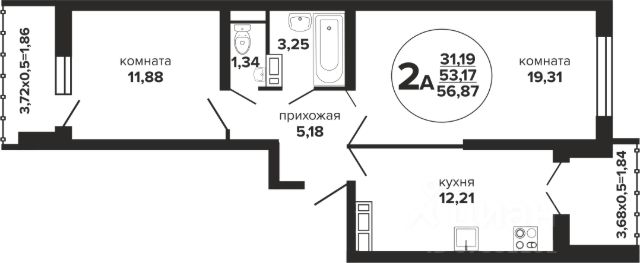 Продаётся 2-комнатная квартира в сданном доме (Литер 4), срок сдачи: III-кв. 2022, общей площадью 55.54 кв.м., на 8 этаже. Расположение, транспортная доступность