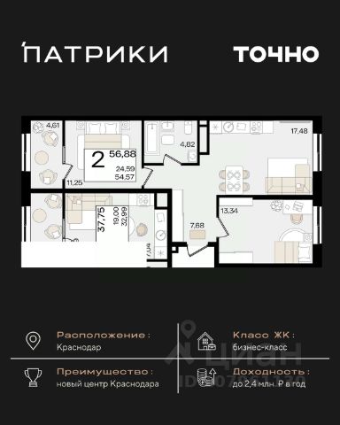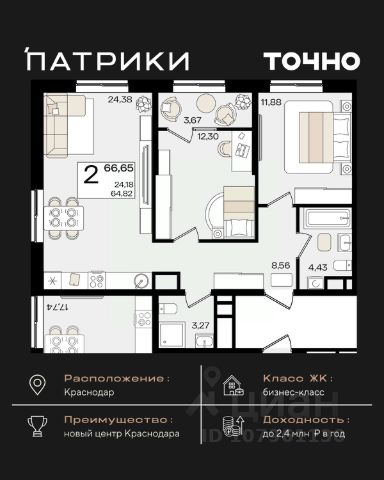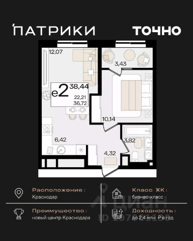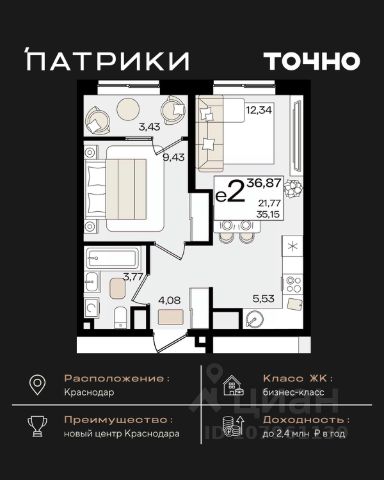 Продаются 2-комнатные апартаменты в сданном доме (Дом 75/6), срок сдачи: II-кв. 2023, общей площадью 48.8 кв.м., на 9 этаже. Апарт-отель The Grand Palace - новая точка притяжения на карте Краснодара. Проект формирует особенный облик деловой части города и вдохновляет его жителей. Апарт-отель - это новый для Краснодара формат жилья, где можно постоянно жить в более комфортных, чем в обычном доме условиях самому и с семьей или купить готовые апартаменты с ремонтом в качестве инвестиции для сдачи в красткосрочную или долгосрочную аренду. От обычного жилого комплекса апарт-отель отличает собственная внутренняя инфраструктура. Резидентам апартаментов доступны услуги зоны SPA и фитнеса, медицинского консьержа, ресторана авторской кухни, прачечной и клининга, коворкинга и лобби-бара. Все апартаменты продаются с ремонтом под ключ! Единый архитектурный стиль и продуманный до мелочей дизайн всех помещений и апартаментов надолго останется актуальным. Инфраструктура - На расстоянии менее 1 км. находятся крупнейшие торгово-развлекательные центры : СБС Мегамолл с кинотеатром, ресторанами, кафе, ТРК Галактика. - Рядом 2 premium фитнес-центра с бассейнами 50 GYM и X-FIT - 10 минут пешком. - Удачный район не только для отдыха, но и бизнеса: с оптовыми базами, офисными центрами, складскими помещениями. - Удобная транспортная развязка с выездом в любой район города, аэропорт и на трассу М4 к морю. - Множество остановок общественного транспорта, в том числе маршруток и трамвая в любой конец города. 15 минут пешком до детского сада и школы 24 Всё это обеспечит повышенный интерес и постоянный спрос на апартаменты, что гарантирует стабильный доход от рентабельной недвижимости в Краснодаре, цена на которую будет только расти.