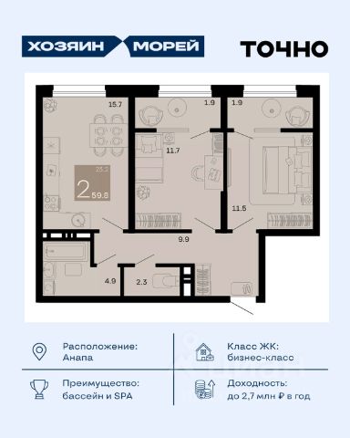 Комфортная, вместительная квартира 63 кв.м. с самым удобным расположением.