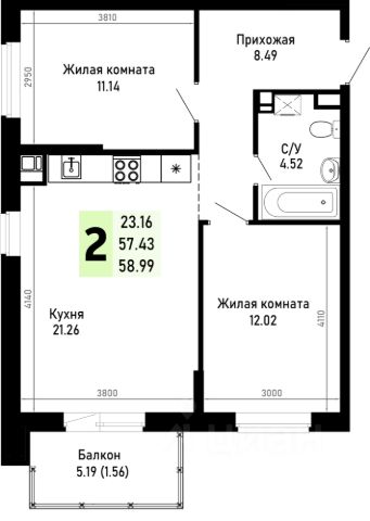 Продаётся 2-комнатная квартира в строящемся доме (квартал 7.1 литер 2), срок сдачи: IV-кв. 2026, общей площадью 57.46 кв.м., на 4 этаже. Новый жилой комплекс по ул. Николая Лебедева от застройщика "ССК"