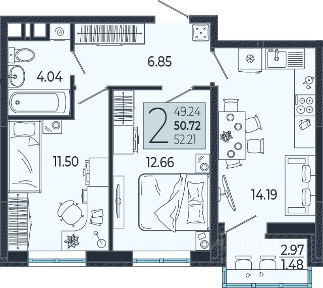 2-комнатная, 11 этаж