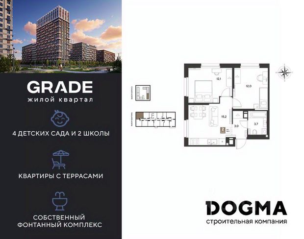 В продаже 2-комнатная квартира от застройщика! ЖК GRADE г. Краснодар, Литер 15 Срок сдачи: 4 кв. 2027, общей площадью 53.5 кв.м., на 4 этаже. GRADE от DOGMA: квартал бизнес-класса. Никогда неоклассика не была представлена в краснодарской архитектуре с таким характером. Пока не появился GRADE, неоклассический квартал, объединяющий строгие формы и величие с прогрессивными технологиями и лаконичностью современного дизайна. Жить в GRADE — значит чувствовать статус, наслаждаться свободой и управлять своим временем. Квартал с переменной этажностью 9, 16 и 18 этажей предлагает полную инфраструктуру для жизни: 4 детских сада, 2 школы, поликлиника и ФОК расположены в шаговой доступности. Ваши привилегии в GRADE: Архитектура в стиле неоклассицизм. Гранд-лобби с панорамными окнами, мягкой мебелью и выдержанной палитрой. Закрытый клуб с консьерж-сервисом: Детский клуб; Кинотеатр на 20 мест; Фитнес-рум. Благоустройство: Парк с фонтаном и амфитеатром, эко-площадки, зоны отдыха, спортивные площадки. Коммерция на первых этажах с площадками для бизнеса. Технологии "Умный дом": Управление через смартфон; Бесключевой доступ по BLE-технологии; Круглосуточное видеонаблюдение; Бесшовный Wi-Fi по всей территории; Интеллектуальные счетчики. Многоуровневый подземный паркинг с видеонаблюдением, прямым доступом на скоростном лифте и электрозарядками. Дополнительные удобства: Колясочные, велобоксы, кладовые помещения, скоростные лифты. Приобрести квартиру можно одним из способов: Семейная ипотека. Рассрочка. Оплата наличными. Дистанционная покупка. Позвоните сейчас и узнайте больше о возможностях приобретения квартиры бизнес-класса в ЖК GRADE!