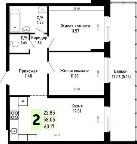 Двухкомнатная квартира с раздельными комнатами — уют, порядок и простор Две полностью изолированные комнаты обеспечивают приватность и гибкость в зонировании: спальня, гостиная, кабинет или детская — решать вам. Отдельная кухня сохраняет чистоту и уют в жилых зонах, а просторный коридор легко превращается в удобную систему хранения. Застекленная лоджия добавляет света и открывает вид на живописную южную природу.