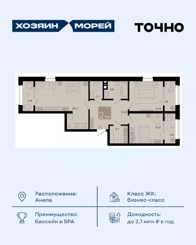 Только через "Самолет Плюс", по программе "Ипотека от партнеров" можете купить эту квартиру под ставку от 14,75% *