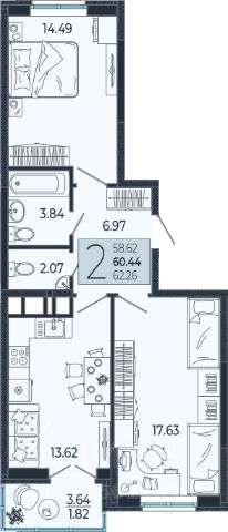 Продаётся 2 -комнатная квартира площадью 59,17 кв. м на 3 этаже в новом современном комплексе комфорт-класса от строительной компании "КОНТИНЕНТ ГРУПП" в одном из самых быстроразвивающихся районов города. ЖК ЭСТЕТ — ЭТО: — монолитно-кирпичный дом — эргономичные планировки от студий до 3-комнатных квартир; — витражное остекление; — лапомоечные и колясочные в каждом подъезде; — подземный и наземный паркинг; — система "Умный дом"; — закрытый двор и система видеонаблюдения; — зоны для отдыха и занятий спортом; — детские площадки; — озеленение с тематическими площадками; — развитая инфраструктура, в шаговой доступности школы, детсады, больницы, поликлиники, новый ТЦ. Компания работает по 214 ФЗ, с проектным финансированием от Сбербанка и с эскроу-счетами. Можно выгодно приобрести недвижимость под любую программу ипотеки: семейная, IT, военная, ипотека с учительским или медицинским сертификатом в качестве первоначального взноса, стандартная и субсидированная программы. Так же возможно приобрести парковку в ипотеку до 30 лет. Компания работает со всеми крупными банками страны. ???? Скорее звоните - будем рады помочь с выбором недвижимости от строительной компании "КОНТИНЕНТ ГРУПП" в г. Краснодар.