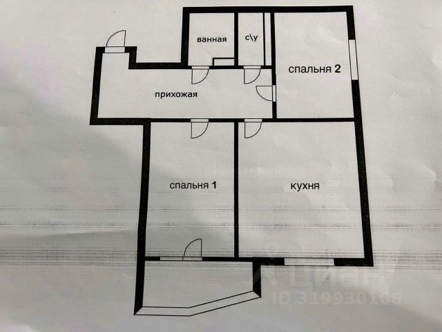 продаётся 2 х комнатная квартира без ремонта.