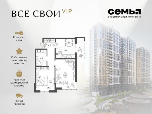 ЖК "Все свои VIP" — квартира бизнес-класса в центре Краснодара. Инфраструктура, стиль, инвестиции. Это не просто жильё — это образ жизни с высоким уровнем комфорта, статуса и выгоды. "Все свои VIP" — отличный выбор: • Локация премиум-уровня: всего 10 минут и вы у главной артерии города - улица Красная. Всё нужное рядом: торговые точки, кафе, культурные объекты, прогулочные зоны. Удобный выезд в любом направлении города. • Полностью развитая инфраструктура внутри комплекса: школа и детский сад, коммерческие галереи, закрытая территория, двор-парк, спортивная и детская площадки. • Интеллектуальные планировки: максимум полезного пространства для ваших целей. Высота потолков до 3 метров. • Панорамное остекление дарит вам впечатляющий вид на центр столицы Кубани. • Система умный дом: управление доступом во двор или в подъезд, телеметрия и домофония в вашем смартфоне. Для автолюбителей интеллектуальный шлагбаум. • Отличный вариант для инвестиций благодаря расположению и классу жилья. Выгодные условия приобретения • Возможность приобрести квартиру с максимальной выгодой — до 2 190 000 ₽. • Семейная ипотека от 2,5%. • IT ипотека - 6%. • Возможность покупки по господдержке и с использованием маткапитала. • Рассрочка с удобным графиком платежей. СК Семья входит в топ-5 среди застройщиков Краснодарского края. Надёжная компания с десятками реализованных проектов. Звоните — поможем Вам сделать правильный выбор и подобрать лучший вариант под ваш бюджет и цели. Продается 2-комнатная квартира в округе Центральный в городе Краснодар.