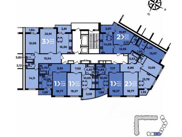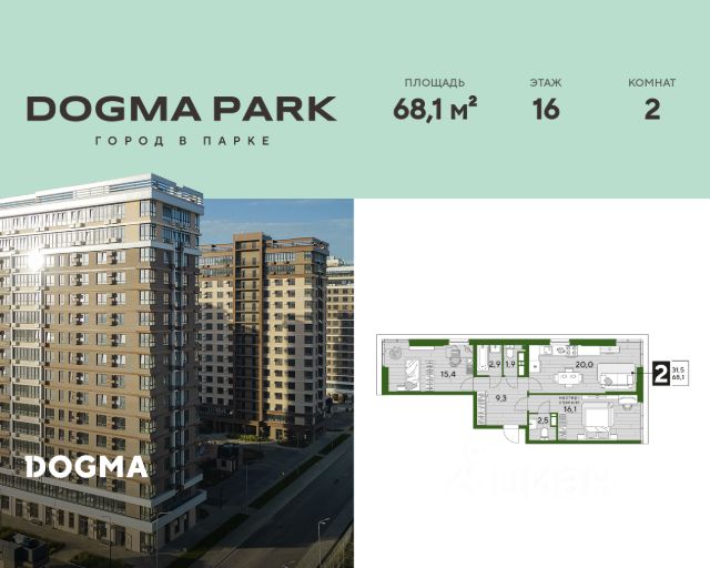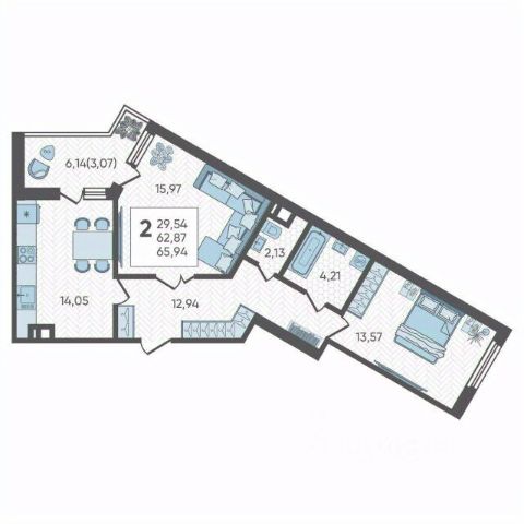 С удобной планировкой: просторная кухня-гостиная и две отдельные спальни. Общая площадь — [50] м².