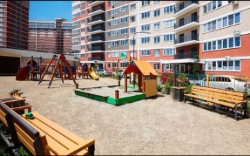 Во дворе предусмотрены пространства, на которых можно найти занятия для всех членов семьи. Безопасные детские площадки оборудованы прорезиненным покрытием, на них есть горки и качели. Универсальные спортивные зоны закрыты решеткой, поэтому баскетбольный или футбольный мяч не покинет пределы площадки.