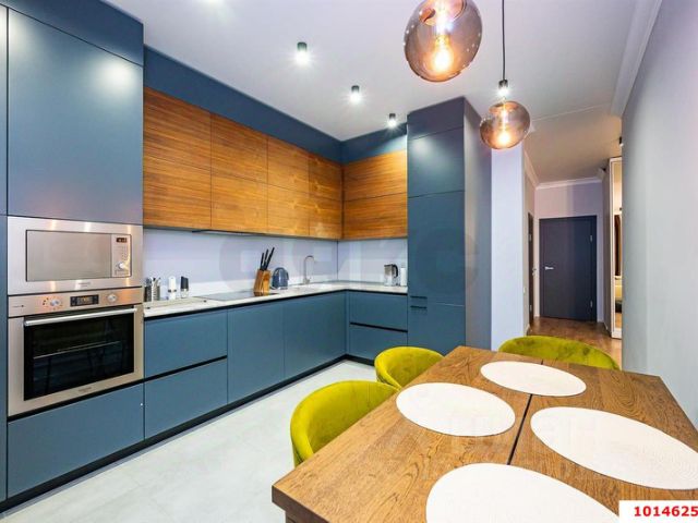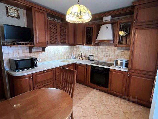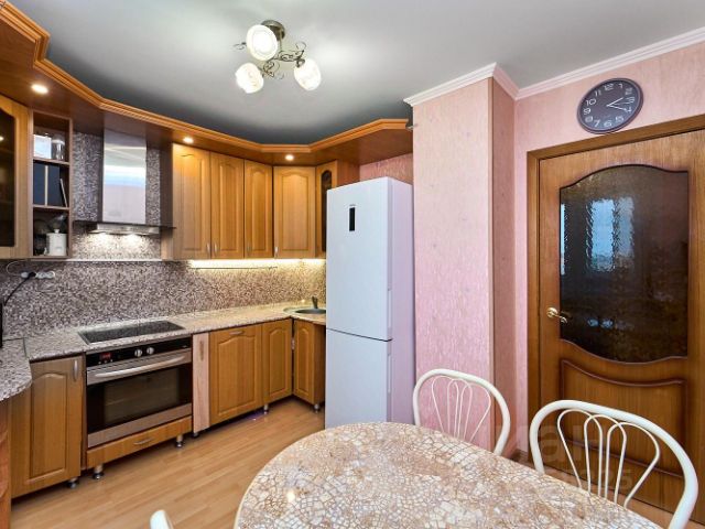 На кухне установлен дорогой гарнитур с хорошей бытовой техникой. Посудомоечная машина 60 см фирмы Electrolux, духовой шкаф фирмы Electrolux, варочная панель фирмы Electrolux, двухметровый холодильник фирмы Bosh. Установлена вытяжка над плитой. Фильтры для очистки воды, удобная двойная раковина, кран Grohe. Барная стойка, светильники над барной стойкой, можно поставить кофе машину и насладиться любимым напитком.