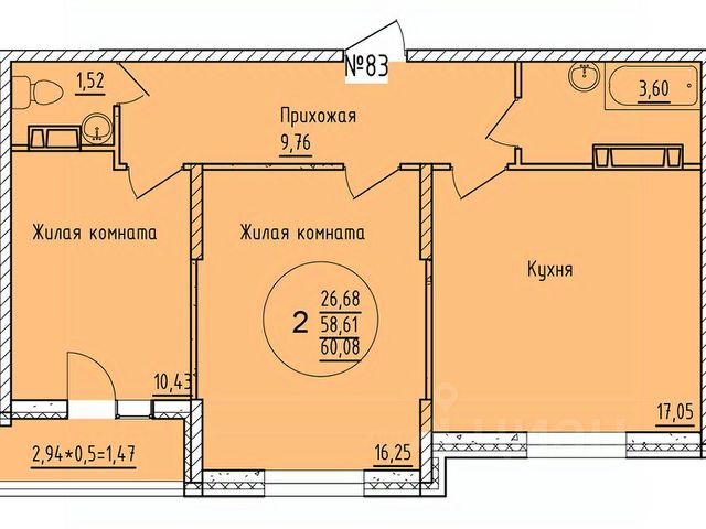 Продается уютная двухкомнатная квартира в новом доме по адресу: Краснодар, улица Владимира Жириновского. Общая площадь квартиры составляет 51 квадратный метр, жилая площадь — 29 квадратных метров, кухня — 11.6 квадратных метров. Квартира находится на 10 этаже 16-этажного монолитно-кирпичного дома, построенного в 2023 году.