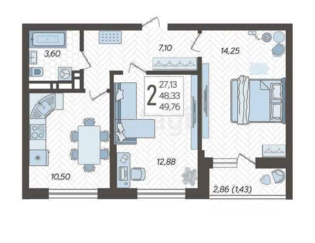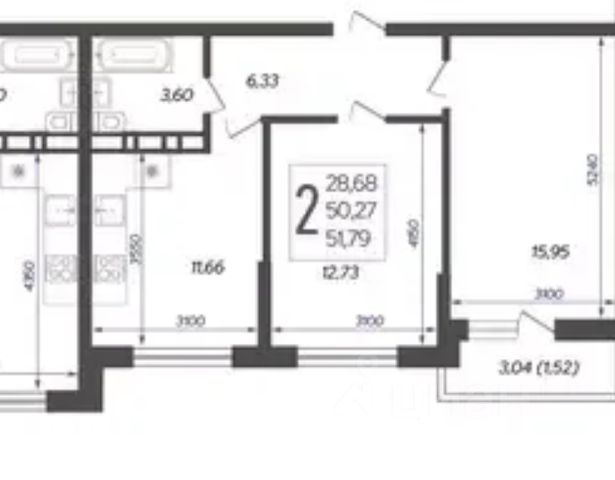 В квартире две изолированные комнаты и кухня, сделана предчистовая отделка от застройщика. Установлены счетчики.