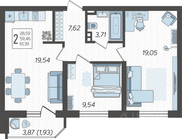 Успей купить Двухкомнатную квартиру по цене Однокомнатной!