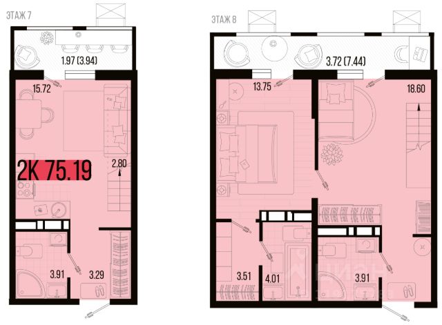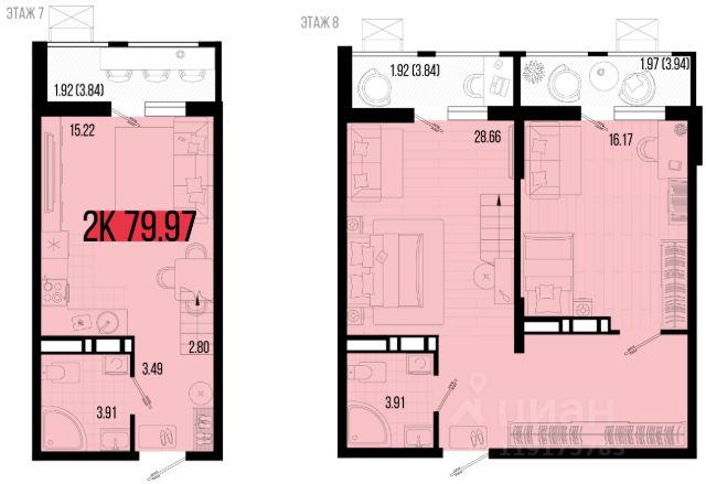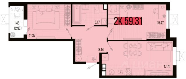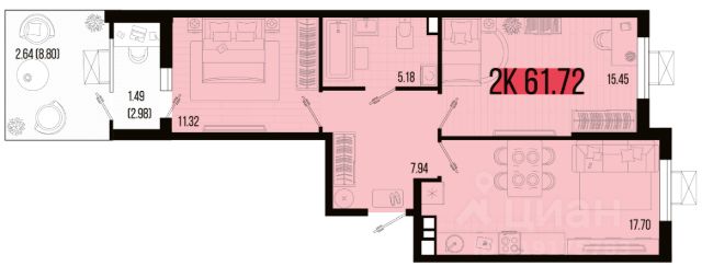 Площадь: 42,1 кв.м.