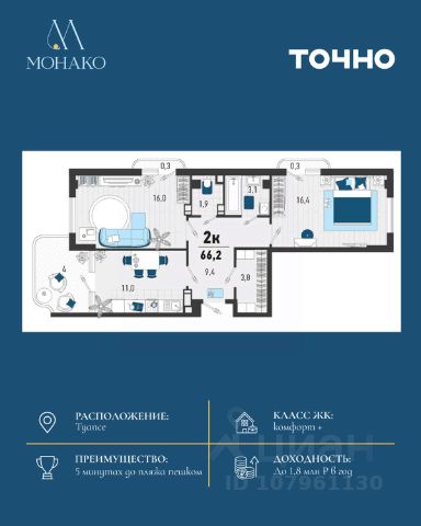 Две Реки это жилой комплекс комфорт-класса, расположенный на живописной равнине в окружении гор на Черноморском побережье в городе Туапсе. Проект клубного типа представляет собой 10-этажный дом с двумя секциями. В комплексе Две Реки располагаются всего 102 квартиры, что гарантирует комфортное соседство, на территории ЖК представлена детская игровая зона, мангальная зона, беседки и парковочный комплекс состоящий из наземной гостевой парковки и многоуровневый паркинг еще на 96 мест, который примет автомобиль каждого жильца. ЖК "Две реки" расположен в одном из самых экологически чистых и красивых районов - Калараша , самом комфортном для проживания в Туапсе. Рядом с домом находится современная школа, ведется строительство детского сада, больница, частная клиника, стоматология, круглосуточный супермаркет, автобусная остановка. Вид из окна — на зеленые горы и огненные приморские закаты. ЖК Две реки - это Ваше личное убежище, прикасаясь к которому, Вы ощутите гармонию с природой. Только представьте себе тихий уголок, где каждый ваш день начинается с пробуждения под мягкий шепот реки и пение птиц. У нас все квартиры видовые. Две реки - это место где Вы можете расслабиться и насладиться потрясающим видом на горы и позволить своим заботам исчезнуть. Ну разве не мечта?! Которую Вы можете реализовать уже сегодня. Дома сданы. Началось строительство новой очереди. 2-комнатная квартира в Туапсе.