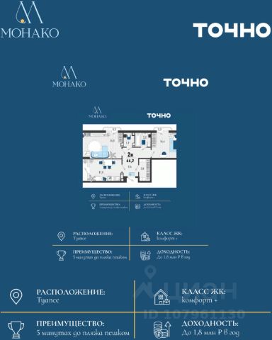 Представляем вашему вниманию жилой комплекс "Монако", который расположился на берегу Черноморского побережья в укромном поселке Агой Туапсинского района. Жилой комплекс "Монако" - это олицетворение стиля и комфорта! Трехэтажный кирпично-монолитный дом с фасадом из белой штукатурки - это ваша новая резиденция. Дизайнерская отделка входных групп в стиле морских волн также подчеркивает роскошь этого места. На территории комплекса "Монако" вас ждет ухоженный ландшафтный дизайн, спортивная площадка, детская площадка с безопасным покрытием, зона отдыха и барбекю. Круглосуточное видеонаблюдение обеспечивает вашу безопасность. Наземная парковка для автомобилей сделает вашу жизнь еще удобнее. Отдельным преимуществом является готовый дизайн-проект квартир не просто с отделкой, но и с установленным кухонным гарнитуром. Качественные и долговечные материалы позволят создать индивидуальный интерьер, и вам останется только самое приятное — заняться расстановкой мебели и декорированием. Представьте себе жизнь в квартире с панорамными окнами, откуда открывается великолепный вид на горы и море. В квартире представлена открытая лоджия с мебелью из ротанга, где можно с утра выпить чашку кофе и послушать пение птиц. Расположенный в селе Агой Туапсинского района, ЖК "Монако" предлагает все необходимое для комфортной жизни: школы, детские сады, медицинские центры, магазины, кафе и рестораны. Благоустроенный пляж, в 5ти минутах ходьбы от ЖК, добавляет вам возможность наслаждаться морским воздухом. До центра города Туапсе всего 15 минут на транспорте. Не упустите шанс жить роскошно! ЖК "Монако" - это ваша мечта о прекрасной жизни, ожившая прямо здесь и сейчас! Звоните нам прямо сейчас и бронируйте квартиру!