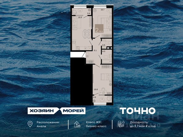 Откройте для себя мир комфорта и роскоши в жилом комплексе бизнес-класса "Хозяин морей". 9 домов от 8 до 12 этажей окружены благоустроенной территорией с прогулочными дорожками, бассейнами, детскими площадками, пространством для спорта и отдыха, двумя садиками и просторной школой. Здесь представлены разнообразные планировки: от комфортабельных студий площадью 33 кв.м до просторных семейных квартир с уникальными видами на бескрайнее море — идеальная комбинация уюта и статуса!