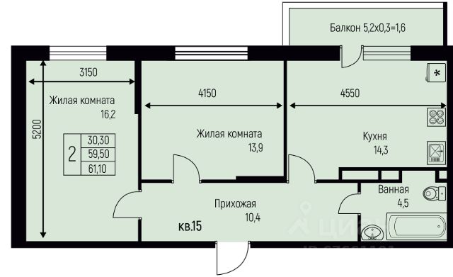 Продаётся 2-комнатная квартира в строящемся доме (Литер 9), срок сдачи: IV-кв. 2025, общей площадью 57.6 кв.м., на 3 этаже. Новый жилой комплекс "Nova Vita" от застройщика МЕТРИКС DEVELOPMENT расположен по адресу Краснодар, посёлок Берёзовый, улица имени А.Н. Лодыгина.