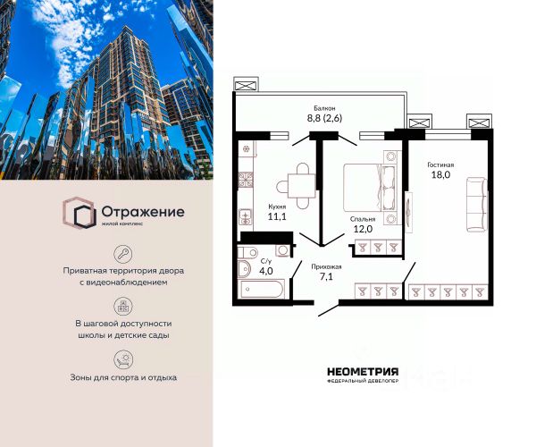 квартиру в ЖК "Отражение" (р-н Достояние ), в доме бизнес класса с круглосуточной охраной! Красиво оформлены входные группы, почтовые ящики из нержавеющей стали, три скоростных лифта "Kone" спускаются в подземный паркинг.