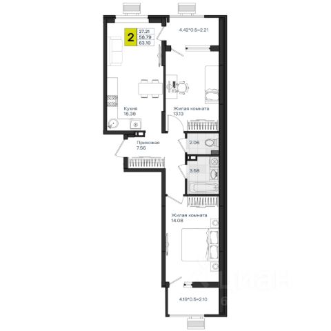Продаётся 2-комнатная квартира в сданном доме (Литер 6), срок сдачи: II-кв. 2024, общей площадью 44.82 кв.м., на 8 этаже. РАСПОЛОЖЕНИЕ