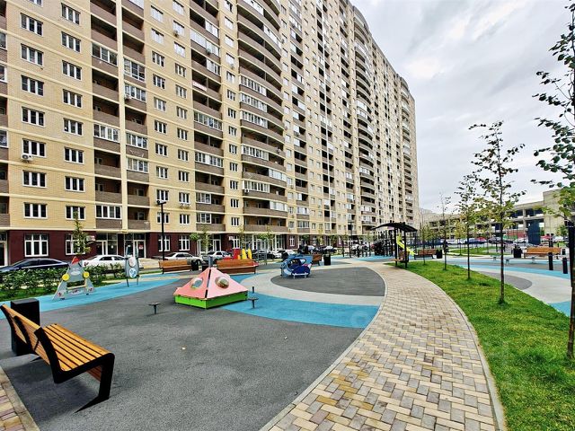 Во дворе предусмотрены пространства, на которых можно найти занятия для всех членов семьи. Безопасные детские площадки оборудованы прорезиненным покрытием, на них есть горки и качели. Универсальные спортивные зоны закрыты решеткой, поэтому баскетбольный или футбольный мяч не покинет пределы площадки.