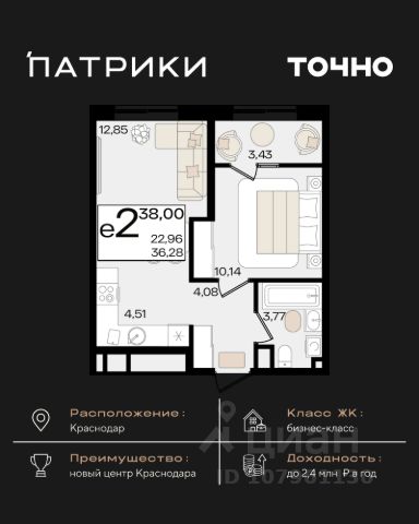 Жилой район бизнес-класса "Патрики" находится в новом центре Краснодара. Это комплекс из 10 домов переменной этажности, гармонично расположенных на территории 28,5 га. Концепция "город в городе" превращает "Патрики" в место, из которого не нужно уезжать, потому что здесь есть все для комфортной жизни и отдыха: просторные прогулочные аллеи и зеленая парковая зона, 3 детских сада и 2 школы, включая частную, гранд-аллея с ресторанами, бутиками, фонтанами и атмосферой европейских столиц, уникальные арт объекты и ландшафтный дизайн, создающие неповторимый облик района Креативный кластер "Цех" — сердце деловой и культурной жизни "Патриков": коворкинг, фудкорт, авторские магазины, детский комплекс, лектории, фитнес-клуб "Баланс" с волной для сёрфа, — здесь рождаются идеи, бизнесы и яркие события. На территории сохранены две башни легендарного завода "Сельмаш" — теперь это арт-объекты Мастер и Маргарита, ставшие символом соединения прошлого и будущего. Микрорайон "Патрики" — это проект не только для жизни и отдыха, но и для выгодных вложений. Выбирайте "Патрики" и получайте доход от инвестиций до 2,4 млн рублей в год.*