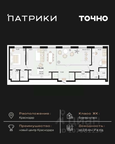 Флагманский проект группы компаний Точно - жилой комплекс бизнес-класса Патрики, это 10 домов разной этажности расположившихся на 28,5 гектарах. Жилой комплекс с концепцией город в город - прогулочные аллеи, парковая территория, 3 детских сада, 2 школы - одна из которых частная, Гранд аллея с ресторанами, фонтанами и модными бутиками, уникальные мафы и ландшафтный дизайн, создают особую атмосферу - место в котором хочется находиться. В Патриках предусмотрен и креативный кластер Цех, который включает в себя пространство для коворкинга, фудкорт, бутики, детский комплекс, лектории, фитнес-клуб Баланс с волной для сёрфа. Но и это еще не все ГК Точно уважает историю, поэтому мы сохранили 2 башни - наследство от завода "Сельмаш" исторический арт-объект назвали Мастер и Маргарита.