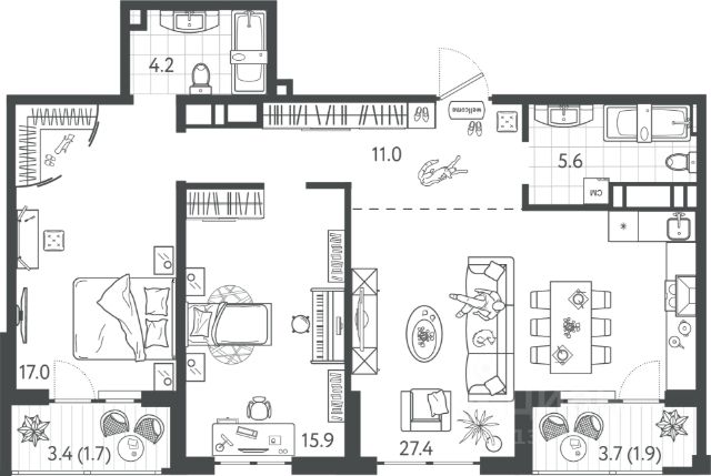 В продаже 2-комнатная квартира от застройщика DOGMA! ЖК REEDS, г. Краснодар, Литер 14