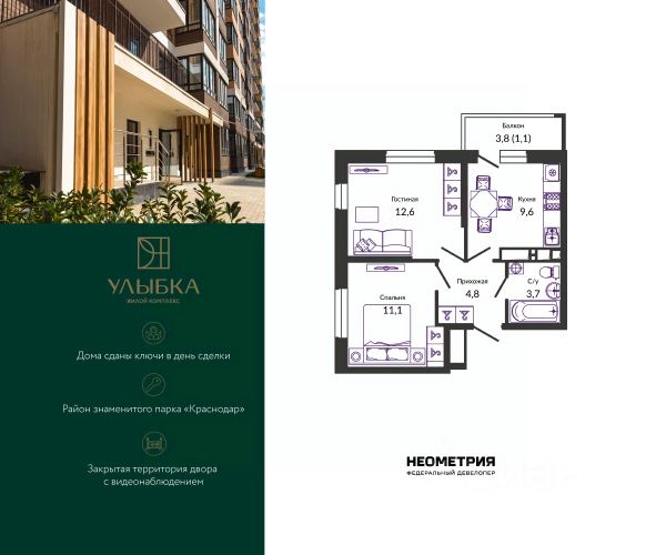 В проекте предложено множество планировочных решений: в наличии квартиры, как классического типа, так и европланировки. Квартиры сдаются с подчистовой отделкой и высотой потолков 2.8 метра. Лоджии и окна в квартирах — остекленные.