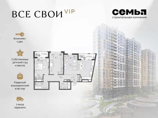 ЖК "Все свои VIP" — квартира бизнес-класса в центре Краснодара. Инфраструктура, стиль, инвестиции. Это не просто жильё — это образ жизни с высоким уровнем комфорта, статуса и выгоды. "Все свои VIP" — отличный выбор: • Локация премиум-уровня: всего 10 минут и вы у главной артерии города - улица Красная. Всё нужное рядом: торговые точки, кафе, культурные объекты, прогулочные зоны. Удобный выезд в любом направлении города. • Полностью развитая инфраструктура внутри комплекса: школа и детский сад, коммерческие галереи, закрытая территория, двор-парк, спортивная и детская площадки. • Интеллектуальные планировки: максимум полезного пространства для ваших целей. Высота потолков до 3 метров. • Панорамное остекление дарит вам впечатляющий вид на центр столицы Кубани. • Система умный дом: управление доступом во двор или в подъезд, телеметрия и домофония в вашем смартфоне. Для автолюбителей интеллектуальный шлагбаум. • Отличный вариант для инвестиций благодаря расположению и классу жилья. Выгодные условия приобретения • Возможность приобрести квартиру с максимальной выгодой — до 2 190 000 ₽. • Семейная ипотека от 2,5%. • IT ипотека - 6%. • Возможность покупки по господдержке и с использованием маткапитала. • Рассрочка с удобным графиком платежей. СК Семья входит в топ-5 среди застройщиков Краснодарского края. Надёжная компания с десятками реализованных проектов. Звоните — поможем Вам сделать правильный выбор и подобрать лучший вариант под ваш бюджет и цели.