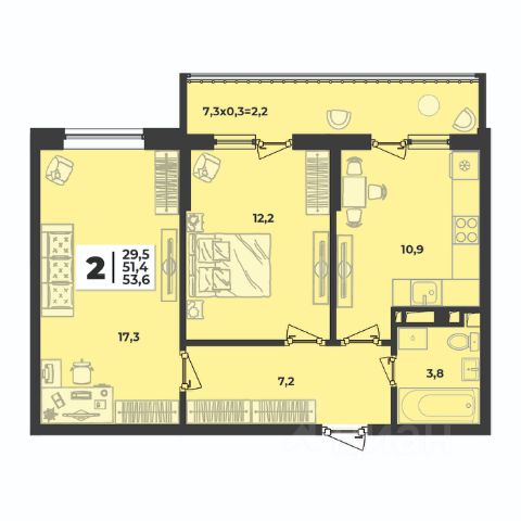 • ✓ В базе Циан 14 2-комнатных квартир на последнем этаже на улице Имени Генерала Корнилова в городе Краснодар