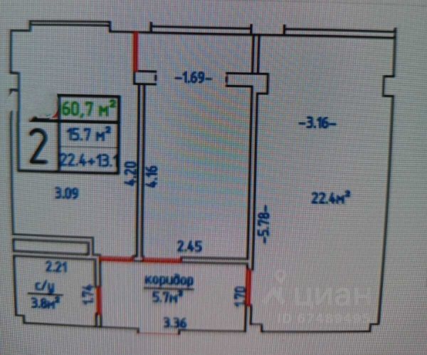 Общая площадь 45 м2 - огромная кухня, просторная прихожая.