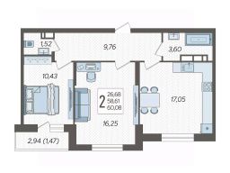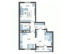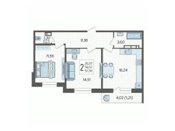 - Общaя площaдь 55.2 кв.м