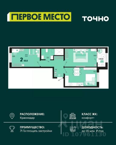Жилой район "Народные кварталы" Комфортный мир, где каждая деталь создана для удобства и гармонии. Что порадует в домах: Дизайнерские входные группы с просторными колясочными и велосипедными — все для комфорта с первого шага. Монолитно-кирпичная технология строительства гарантирует тепло, надежность и долговечность. Высота потолков до 3,9 м наполняет пространство светом и воздухом, создавая ощущение свободы. Предчистовая отделка избавит от пыльных и шумных работ — вы сможете сразу же начать обустраивать свой новый дом по своему вкусу. Первые этажи предназначены для коммерческой недвижимости, что обеспечивает удобство и доступность всех необходимых услуг. О придомовой территории: Просторные пешеходные зоны, пандусы и гостевые парковочные места создают комфортную среду для прогулок и отдыха всей семьи. Закрытая охраняемая территория с видеонаблюдением обеспечит вам полное спокойствие и безопасность. Многоуровневый паркинг на 5000+ машиномест — забудьте о проблемах с парковкой! Детские и спортивные площадки, зеленый бульвар — идеальное место для активного отдыха и общения с соседями. Три детских сада по 350 мест и школа на 1550 мест — все для удобства ваших детей. Более 18 000 м² пространства для занятий спортом: футбол, баскетбол или теннис — выберите то, что вам по душе! Все необходимое — на расстоянии вытянутой руки: ТРЦ "Красная Площадь", "Метро", "Стрелочка" — шопинг и развлечения для всей семьи. Супермаркеты, аптеки, рестораны и остановки общественного транспорта — все для вашего комфорта. Прямая продажа от застройщика. Живите там, где удобно, где уютно и где всегда рядом все, что нужно для жизни. Выбирайте ЖР "Народные кварталы". Купить 2-комнатную квартиру в новостройке без отделки в Краснодаре.