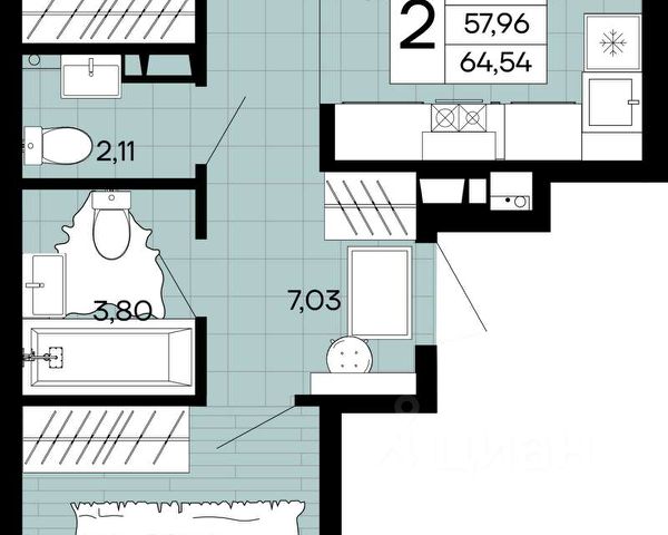 • ✓ В базе Циан 8,8 тыс. 2-комнатных квартир с большой кухней в Краснодарском крае