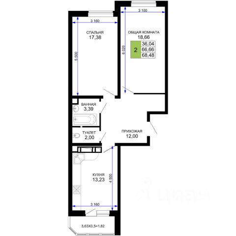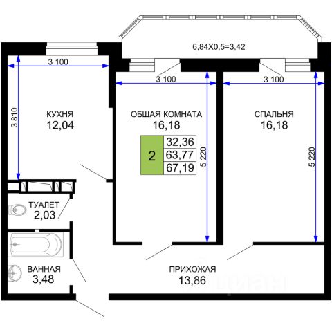 Продаётся 2-комнатная квартира в сданном доме (Литер 5), срок сдачи: IV-кв. 2023, общей площадью 58.9 кв.м., на 1 этаже. Расположение, транспортная доступность