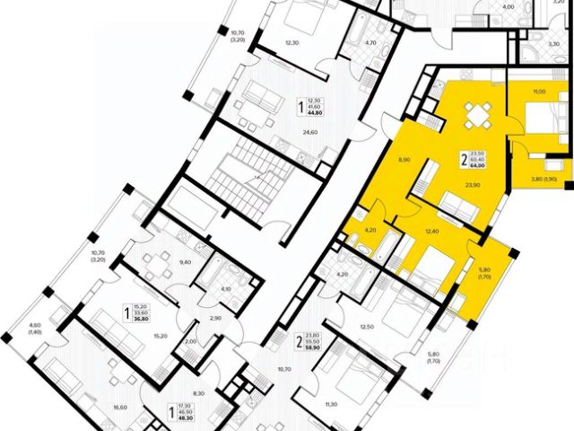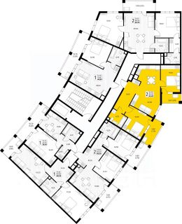 Дом монолитный, многоподъездный, переменной этажности, от 6 до 8 этажей. B подъезде два лифта - пассажирский и грузовой.