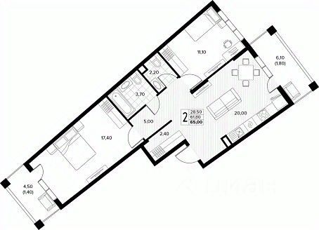 • На Циане представлено 745 объявлений квартир первички с фильтрами по районам и ценам.