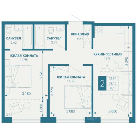 Продается 2 комнатная квартира площадью 59.26 кв. м. на 2 этаже 18 этажного дома, 1 подъезд, номер 12. Стоимость данного лота включает в себя ремонт, мебель и технику. Будут представлены 3 варианта обустройства квартиры: светлый, тонированный и авторский. Для более подробного ознакомления вы можете обратиться в отдел продаж. Жилой комплекс "ИНАЧЕ в Молодежном" включает в себя 14 домов комфорт+ класса переменной этажности с более чем 100 видами планировок, в том числе квартиры с террасами, двухуровневые квартиры и урбан виллы, детский сад на 350 мест, храм, 2 наземных паркинга, а также бульвар и прогулочные аллеи. Срок сдачи первой очереди 4 квартал 2026 года Жилой комплекс находится в Молодежном — тихом микрорайоне с атмосферой размеренной жизни. Рядом расположен зеленый сквер "Изумрудный" с зелеными деревьями и велодорожками. Молодежный — молодой район с готовой инфраструктурой. Всю бытовую и семейную можно легко организовать на расстоянии 10 минут от дома. Есть новая школа, два детских сада, поликлиника, работают магазины, аптеки и салоны красоты. Жилой комплекс расположен рядом с удобными выездами на ключевые городские дороги. Можно быстро доехать как в центр города, так и до моря по Ейскому шоссе. Главные чувства от прогулки по нашему району простота и легкость. Архитектуру мы проработали совместно с архитектурным бюро Маликова и создали район с современным лаконичным обликом. При этом мы учли сценарии жизни людей и современные тренды. В наших домах будут разноэтажные секции. Французские балконы и увеличенные окна. На фасадах не будет визуального шума: кондиционеры будут скрыты с специальных корзинах. По всей территории продумана безбарьерная сеть тротуаров и переходов. Любое перемещение — пешком или с коляской — станет комфортным. - На территории комплекса будут расположены детские и спортивные площадки, а также амфитеатр, арт-объект и храм. - 40% территории занимает озеленение с более чем 50 видами растений. - Хранить автомобиль с комфортом и беречь его от осадков помогут два наземных многоуровневых паркинга. Кроме крытых паркингов, на территории есть открытые — в достаточном числе для жителей и гостей района. - Проект включает в себя строительство современного детского сада и так же в пешей доступности находятся 2 школы. - На первых этажах мы создадим коммерческие помещения с планировками, которые помогают бизнесу. Умный проект коммерции включает удобные входные группы, высокие потолки и панорамные окна, приглашающие заглянуть внутрь. - Эстетика холла продолжает природную идею района. Дизайнерские холлы выполненные в натуральных цветах с живыми деревьями включают в себя места для ожидания, встреч, санузлы, колясочные и постаматы. - Система аудиомультирум в каждой квартир - распределение аудио- и видео-сигналов по всей квартире. Для более подробного ознакомления вы можете обратиться в отдел продаж.