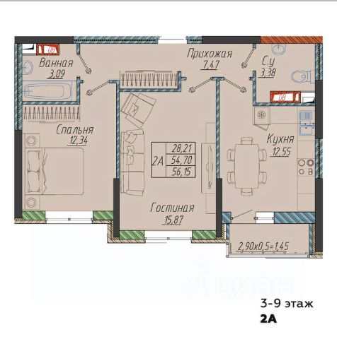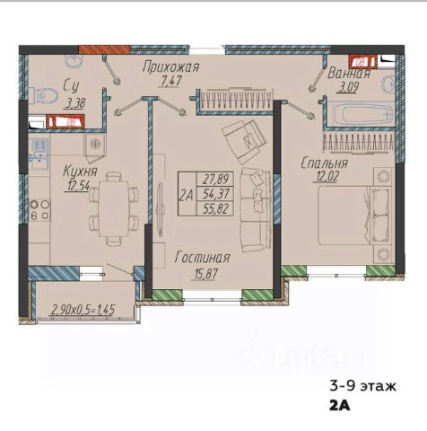 Продаётся 2-комнатная квартира в сданном доме (Литер 3 - 4 очередь), срок сдачи: II-кв. 2024, общей площадью 63.7 кв.м., на 12 этаже. Расположение, транспортная доступность
