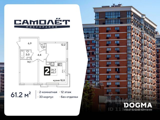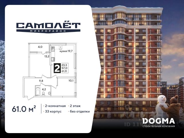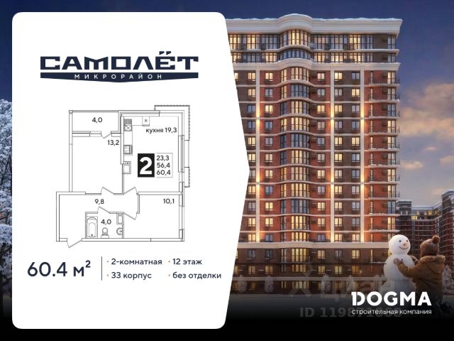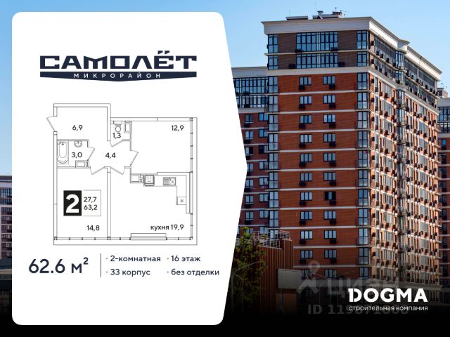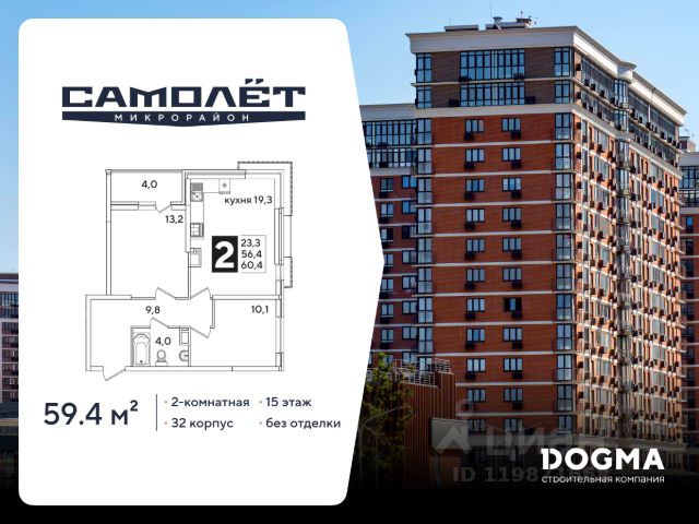 Продаётся 2-комнатная квартира в строящемся доме (Литер 10), срок сдачи: II-кв. 2026, общей площадью 65.39 кв.м., на 15 этаже. Расположение, транспортная доступность Жилой квартал "Славянка" из десяти 16- и 21-этажных домов и 5-уровневого наземного паркинга с земельным участком 8 гектар расположен в молодом Славянском районе на северо-западе Краснодара. В ста метрах проходит улица Красных Партизан, по которой можно быстро доехать в центр города или соседние районы, а в километре улица Западный обход, открывающая дорогу на трассу Р-268 (на север в сторону Тимашевска) или на северо-запад к Азовскому морю и в Крым. В пешей доступности расположены Академический сквер и Ботанический сад. Инфраструктура Цокольные этажи корпусов отданы под коммерческие помещения, где будут открываться магазины, офисы сервисных служб, компаний сферы услуг и пр. объекты инфраструктуры. Около домов комплекса расположены супермаркеты "Пятерочка" и "Магнит", аптека. В радиусе двух километров можно найти два детских сада, две общеобразовательных школы (16 и 63), школу-интернат 3, гипермаркет "Лента", оздоровительный центр "Аквалига", отделение почты и банка, торговый центр с кинотеатром, городскую больницу и Микрохирургию глаза им.Федорова. В шаговой доступности открыты фитнес-клубы KingFit и "Европа Фитнес". Район молодой, инфраструктура развивается по мере появления новых жилых комплексов. Рядом останавливаются автобусы, на которых можно доехать до школы 45 и 90, детской школы искусств, торгового комплекса "Галерея Краснодар", рынка и ТРЦ "Мега Адыгея-Кубань" с гипермаркетами Ашан, Леруа Мерлен, Metro, Спортмастер и М.Видео. Надежность застройщика ООО "КубаньГрадИнвестСтрой" было создано в 2012 году, хотя компания имеет опыт работы на строительном рынке Краснодара с 2006 года. Застройщик довольно быстро завоевал положительную репутацию. Среди очевидных преимуществ компании по сравнению с конкурентами: земельные участки на всех объектах оформлены в собственность, кредитные средства на строительство не привлекаются (только свои ресурсы и инвестиции дольщиков), используется монолитно-кирпичная технология домостроения. Кроме того, предлагаются гибкие условия покупки (материнский капитал, ипотека от нескольких банков, беспроцентная рассрочка до трех месяцев) и скидки пенсионерам, врачам, учителям, многодетным семьям, студентам, инвалидам. Компания владеет строительной техникой и занимается производством бетона. Проект жилого комплекса "Славянка" начат в 2016 году, к этому времени были уже сданы в эксплуатацию "Ставропольский" и "Парус". Продажи оформляются по договорам ДДУ в соответствии с ФЗ-214. Архитектура В состав ЖК "Славянка", расположенного в селитебной зоне города на территории 8 га, входит десять 16-21-этажных корпусов на 4620 квартир и 5-уровневый наземный паркинг на 3200 машиномест. Представлены студии 25-28 кв. м, однокомнатные квартиры 33-36 кв. м и двухкомнатные 54-63 кв. м. Вместо балконов сделаны лоджии. В двухкомнатных раздельный санузел, в студиях и одн Купить 2-комнатную квартиру в новостройке в микрорайоне Славянский в городе Краснодар.