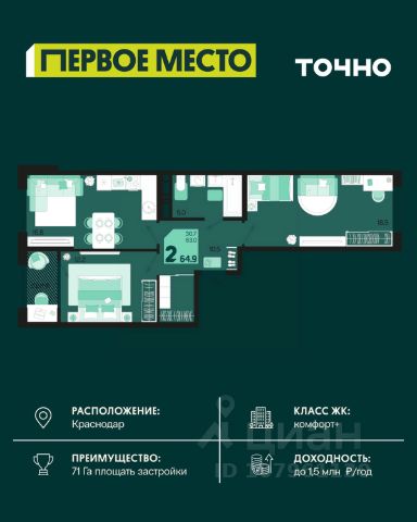 В жилом квартале "Достояние" можно купить квартиры, которые подойдут студентам, парам или большим семьям. Площадь жилых пространств варьируется от компактных студий до 3-комнатных квартир. В каждой из них предусмотрена чистовая отделка, а Продам 2-комнатную квартиру с отделкой от застройщика в Краснодаре.