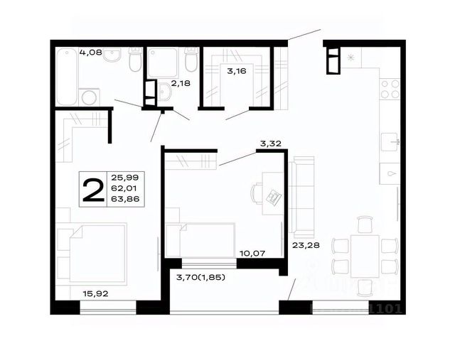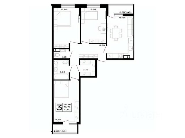 Просторные 1-, 2- и 3-комнатные квартиры с современной планировкой.