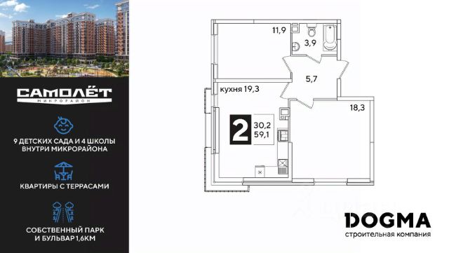Продаётся 2-комнатная квартира в строящемся доме (Литер 10), срок сдачи: II-кв. 2026, общей площадью 65.39 кв.м., на 21 этаже. Расположение, транспортная доступность Жилой квартал "Славянка" из десяти 16- и 21-этажных домов и 5-уровневого наземного паркинга с земельным участком 8 гектар расположен в молодом Славянском районе на северо-западе Краснодара. В ста метрах проходит улица Красных Партизан, по которой можно быстро доехать в центр города или соседние районы, а в километре улица Западный обход, открывающая дорогу на трассу Р-268 (на север в сторону Тимашевска) или на северо-запад к Азовскому морю и в Крым. В пешей доступности расположены Академический сквер и Ботанический сад. Инфраструктура Цокольные этажи корпусов отданы под коммерческие помещения, где будут открываться магазины, офисы сервисных служб, компаний сферы услуг и пр. объекты инфраструктуры. Около домов комплекса расположены супермаркеты "Пятерочка" и "Магнит", аптека. В радиусе двух километров можно найти два детских сада, две общеобразовательных школы (16 и 63), школу-интернат 3, гипермаркет "Лента", оздоровительный центр "Аквалига", отделение почты и банка, торговый центр с кинотеатром, городскую больницу и Микрохирургию глаза им.Федорова. В шаговой доступности открыты фитнес-клубы KingFit и "Европа Фитнес". Район молодой, инфраструктура развивается по мере появления новых жилых комплексов. Рядом останавливаются автобусы, на которых можно доехать до школы 45 и 90, детской школы искусств, торгового комплекса "Галерея Краснодар", рынка и ТРЦ "Мега Адыгея-Кубань" с гипермаркетами Ашан, Леруа Мерлен, Metro, Спортмастер и М.Видео. Надежность застройщика ООО "КубаньГрадИнвестСтрой" было создано в 2012 году, хотя компания имеет опыт работы на строительном рынке Краснодара с 2006 года. Застройщик довольно быстро завоевал положительную репутацию. Среди очевидных преимуществ компании по сравнению с конкурентами: земельные участки на всех объектах оформлены в собственность, кредитные средства на строительство не привлекаются (только свои ресурсы и инвестиции дольщиков), используется монолитно-кирпичная технология домостроения. Кроме того, предлагаются гибкие условия покупки (материнский капитал, ипотека от нескольких банков, беспроцентная рассрочка до трех месяцев) и скидки пенсионерам, врачам, учителям, многодетным семьям, студентам, инвалидам. Компания владеет строительной техникой и занимается производством бетона. Проект жилого комплекса "Славянка" начат в 2016 году, к этому времени были уже сданы в эксплуатацию "Ставропольский" и "Парус". Продажи оформляются по договорам ДДУ в соответствии с ФЗ-214. Архитектура В состав ЖК "Славянка", расположенного в селитебной зоне города на территории 8 га, входит десять 16-21-этажных корпусов на 4620 квартир и 5-уровневый наземный паркинг на 3200 машиномест. Представлены студии 25-28 кв. м, однокомнатные квартиры 33-36 кв. м и двухкомнатные 54-63 кв. м. Вместо балконов сделаны лоджии. В двухкомнатных раздельный санузел, в студиях и одн Купить 2-комнатную квартиру в новостройке с отделкой в микрорайоне Славянский в городе Краснодар.