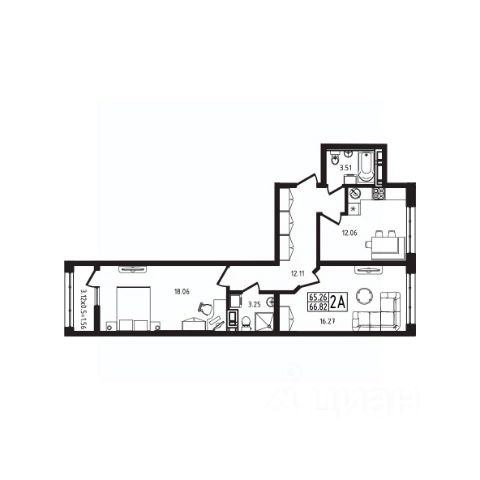 Продаётся 2-комнатная квартира в сданном доме (Олега Цокова, 4 (Литер 6)), срок сдачи: IV-кв. 2024, общей площадью 65.72 кв.м., на 6 этаже.