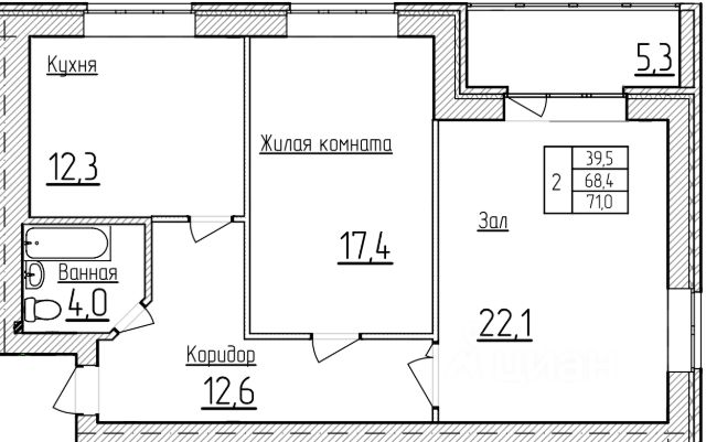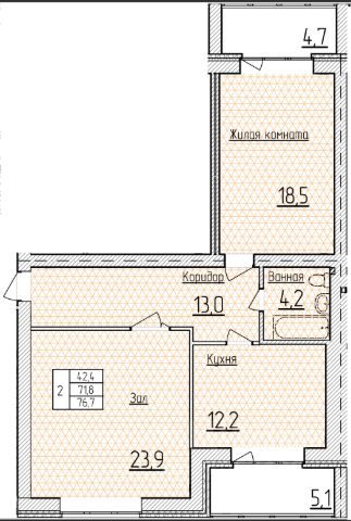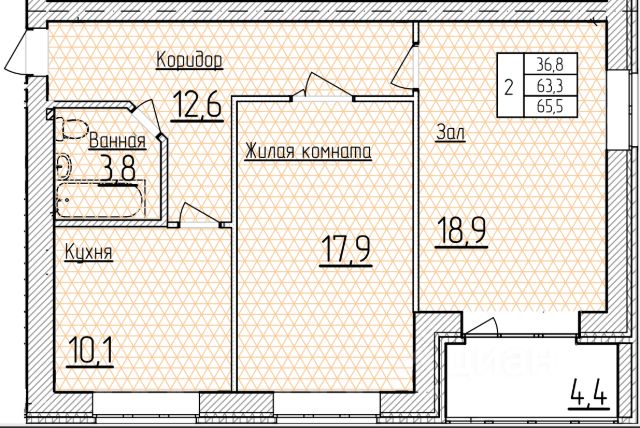 Продаётся 2-комнатная квартира в сданном доме (Корпус 1), срок сдачи: IV-кв. 2024, общей площадью 64.29 кв.м., на 7 этаже.